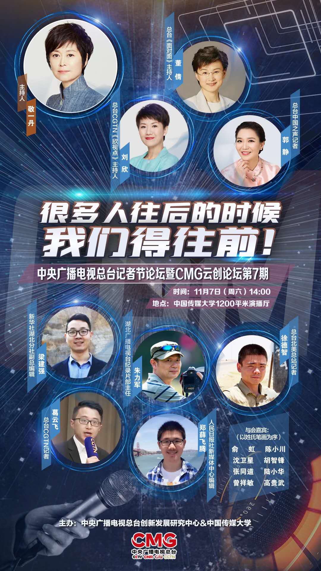 11月7日,中央广播电视总台记者节论坛暨CMG云创论坛第7期在中国传媒大学1200平米演播厅举行,论坛由中央广播电视总台创新发展研究中心与中国传媒大学共同主办,敬一丹主持,并在全网同步直播。论坛邀请多位记者和来自全国多个知名高校、知名机构的专家学者参加,视色 院长陆小华作为点评嘉宾参与此次论坛。