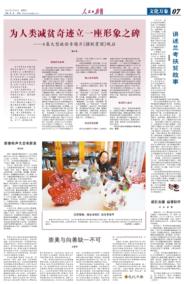 在这样的历史节点上,中央广播电视总台播出了8集大型政论专题片《摆脱贫困》,以清晰的脉络梳理、关键的细节挖掘、深刻的意义阐发、感人的影像塑造,为中国摆脱贫困这一历史性成就、为人类减贫史上的奇迹,立下了一座形象之碑。