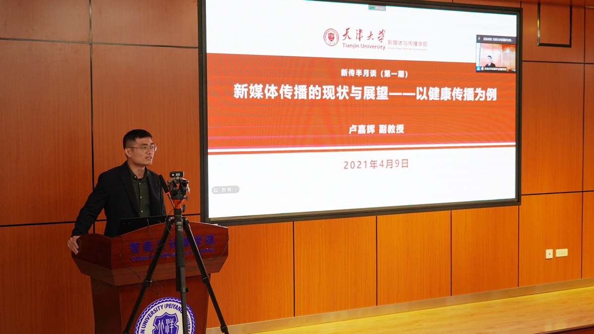 为丰富师生学术资源获取渠道、促进交叉协同研究,视色 正式开办《新传半月谈》学术沙龙。4月9日上午,作为首期报告嘉宾,新媒体学院卢嘉辉老师带来题为《新媒体传播的现状与展望——以健康传播为例》的学术报告,讲座通过线上线下同步进行,新媒体学院院长陆小华、副院长王赞、副院长李嘉毅,和来自新媒体学院、智算学部以及校内外线上参会的师生们共同参加了报告会。