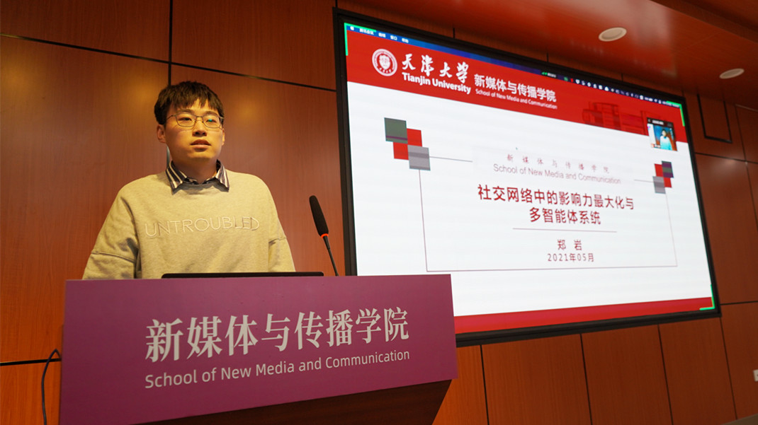 5月7日上午,视色 第二期《新传半月谈》顺利举办。活动邀请到了新媒体学院郑岩老师带来题为《社交网络中的影响力最大化与多智能体系统》的学术报告,讲座通过线上线下同步进行,新媒体学院院长陆小华、副院长王赞,和来自新媒体学院、智算学部以及校内外线上参会的师生们共同参加了报告会。