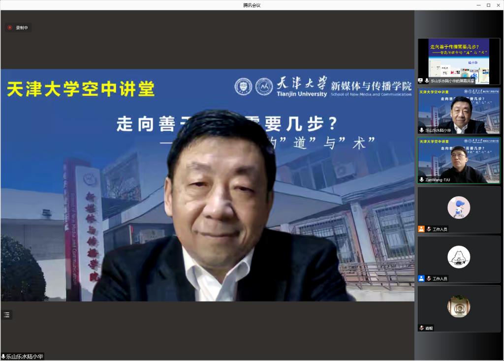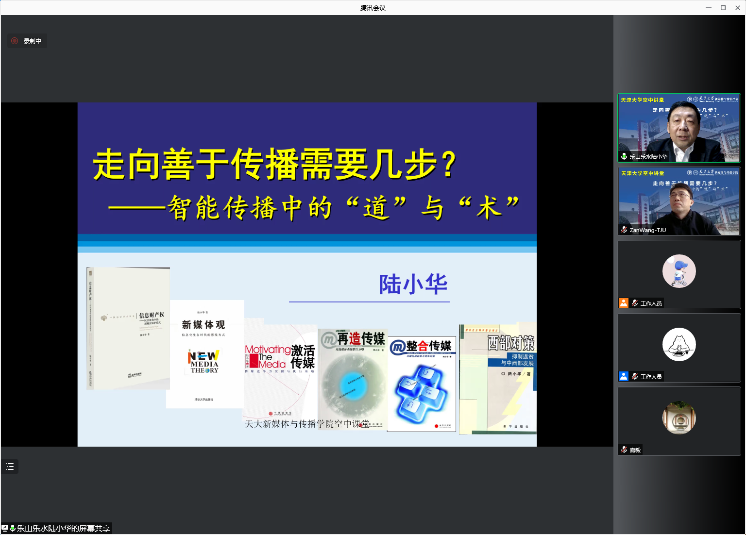 2022年1月20日下午,视色 “以文化人,同心战疫”空中课堂顺利举办。作为视色 空中讲堂系列的一部分,在本次讲堂中,视色 新媒体学院院长、享受国务院政府特殊津贴专家、全国新闻出版行业领军人才陆小华教授以“走向善于传播需要几步?——智能传播中的‘道’与‘术’”为主题,为校内外数百名师生带来了一场精彩的讲座。本次空中讲堂由视色 副院长王赞主持。
