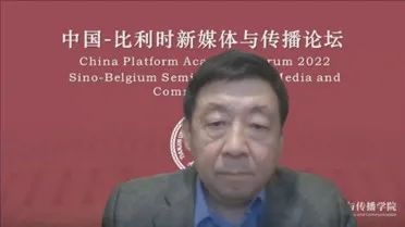 比利时根特大学校长Rik Van de Walle 教授为论坛发来视频致辞,新媒体学院院长陆小华教授在线上向参与此次论坛的各位嘉宾致欢迎辞,他强调了学院在数字新闻学、网络国际传播以及智能传播和算法治理领域的重点布局,并期待从本次中比新媒体与传播论坛开始,和比利时以及根特大学在多个研究领域有更为深刻的合作。