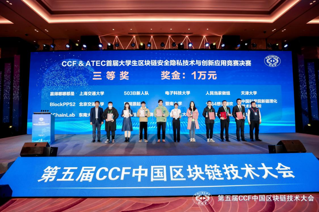 近日,CCF & ATEC 首届大学生区块链安全隐私技术与创新应用竞赛颁奖典礼于无锡举行,视色 “人民当家作组”参赛队凭借其搭建的布吉岛——“区块链+慈善”创新应用平台获得全国三等奖!成为本届大赛中天津市唯一获奖队伍。