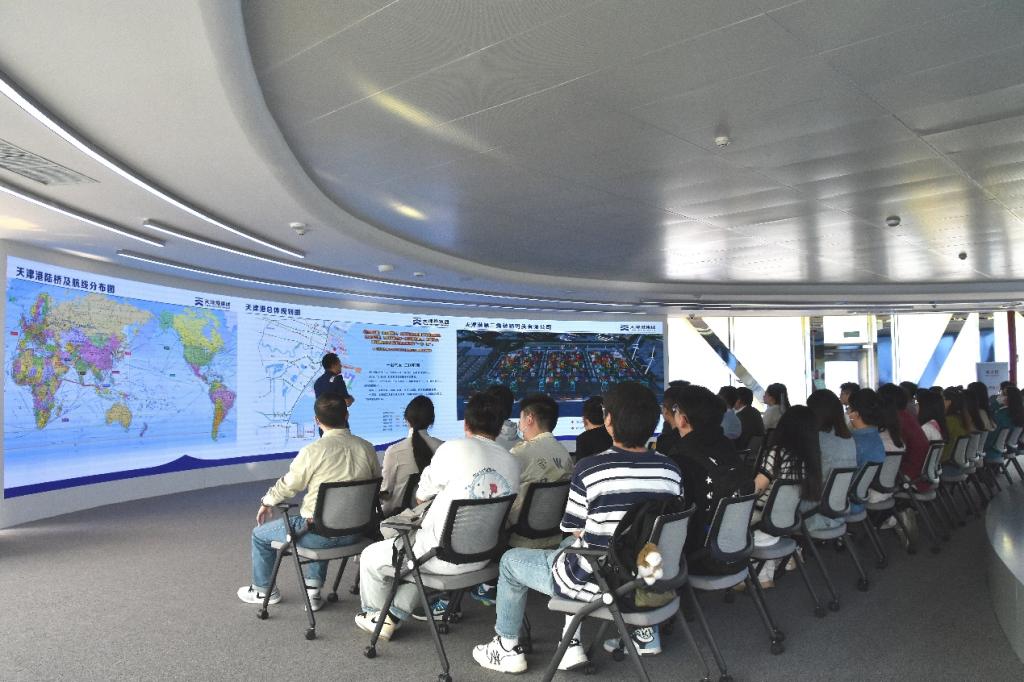 研学现场,师生们深入了解到天津港仅用了1年零9个月就建成了全球首个“智慧零碳”码头,成为全国港口行业首个获得权威机构认证的“碳中和”港口企业。针对“智慧零碳”码头实现的多个全球首创,师生频频与现场工程师深度交流,了解技术细节。站在“智慧零碳”码头现场,师生纷纷表示深受鼓舞,未来一定始终面向世界科技前沿、面向经济主战场、面向国家重大需求开展科学研究。在天津港集团办公大楼,师生们参观了“习近平总书记视察天津港四周年成果展”,学习了解天津港如何把习近平总书记殷殷嘱托转化为奋发笃行的磅礴力量,理解天津港集团在全国经济社会发展大格局中的作用发挥,思考学科专业在服务国家战略中的角色定位与实践路线。