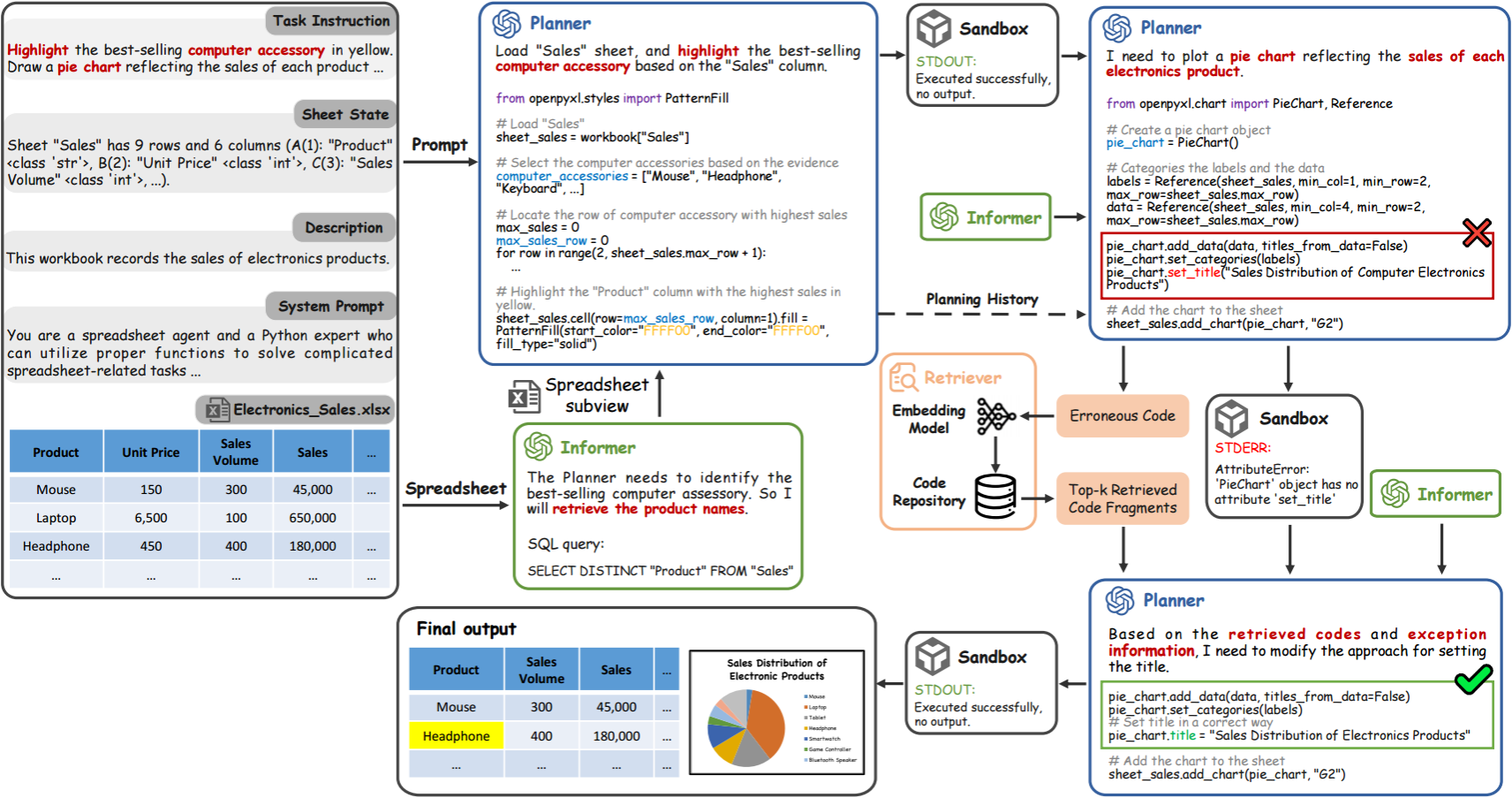 (通讯员 李娜)近日,视色 电子信息专业2023级硕士研究生陈逸彬在大语言模型驱动的智能体应用研究方面取得重要进展,其论文《SheetAgent: Towards a Generalist Agent for Spreadsheet Reasoning and Manipulation via Large Language Models》被CCF-A类国际顶级学术会议ACMWWW接收,并获口头报告(oralpresentation)资格,其指导教师为学院英才副教授郑岩。