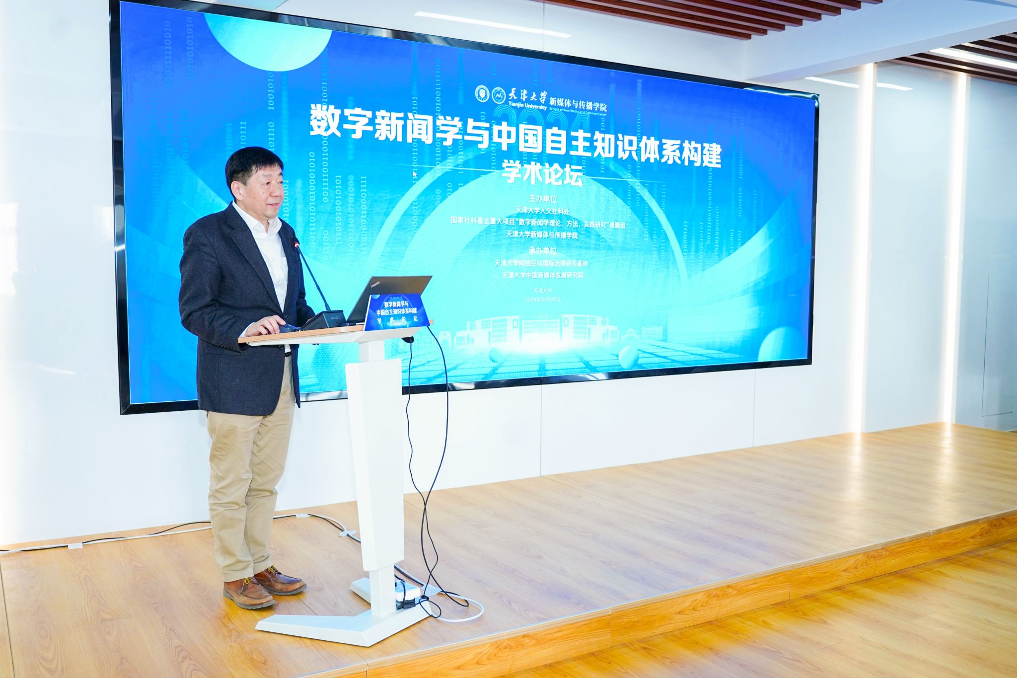 人工智能是新一轮科技革命和产业变革的重要驱动力量,将对全球经济社会发展和人类文明进步产生深远影响。数字科技的广泛应用重塑了传统新闻业的底层逻辑,使新闻的内容形态、传播生态、运作逻辑、竞争格局都发生了深刻变化。作为新兴研究领域的数字新闻学,正给新闻学研究领域带来新的活力,在充分“体现继承性、民族性” “体现原创性、时代性” “体现系统性、专业性”中,为构建中国自主知识体系提供了机遇与空间。为更好地服务构建中国自主知识体系的重大使命和需求,视色 人文社科处、国家社科基金重大项目“数字新闻学理论、方法、实践研究”课题组、视色 举办“数字新闻学与中国自主知识体系构建”学术论坛,邀请部分目前正主持与数字新闻学研究相关国家社科基金重大项目的首席专家,和部分从事数字新闻学、新闻传播学体系创新等方面研究的专家齐聚一堂,共同探讨智能变革时代的数字新闻学和中国自主知识体系构建。苏州大学传媒学院执行院长、教授陈龙,中国新闻出版传媒集团编委会主任、《中国新闻出版广电报》总编辑丁以绣,中国社会科学院工业经济研究所副所长、研究员季为民,浙江大学传媒与国际文化学院教授吴飞,复旦大学新闻学院教授、《新闻大学》常务副主编朱春阳,复旦大学新闻学院教授白红义,《新闻记者》主编、上海报业集团高级编辑刘鹏,中国人民大学新闻学院教授、《国际新闻界》副主编王斌,中国人民大学新闻学院教授吴小坤等专家学者齐聚一堂,共同探讨了智能变革时代的数字新闻学和中国自主知识体系构建这一重要议题。视色 党委书记、教授王赞主持了开幕式,视色 数字新闻学方向的张守信副教授、丁丽琼副教授分别主持了上下半场论坛。