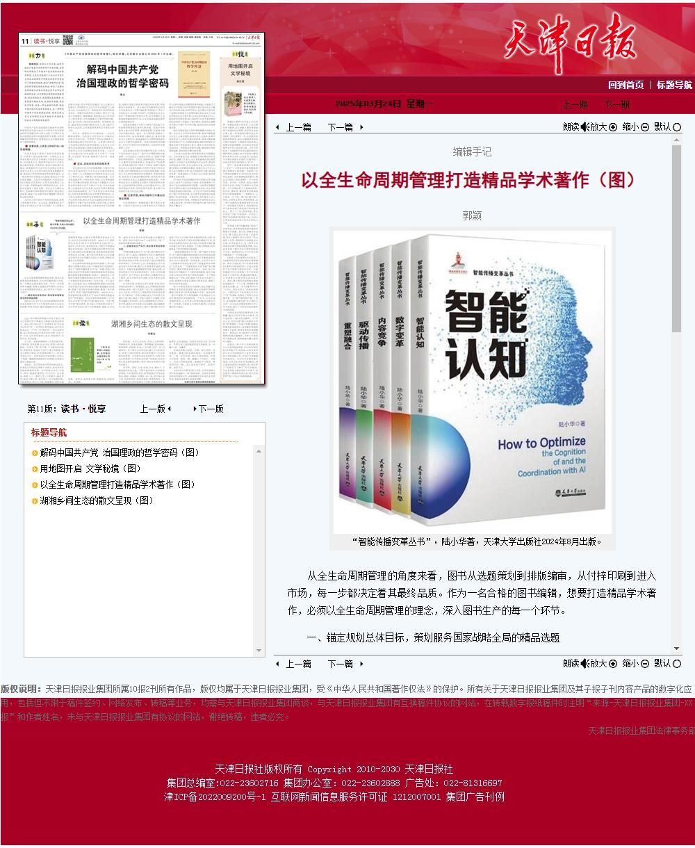 《天津日报》| 以全生命周期管理打造精品学术著作